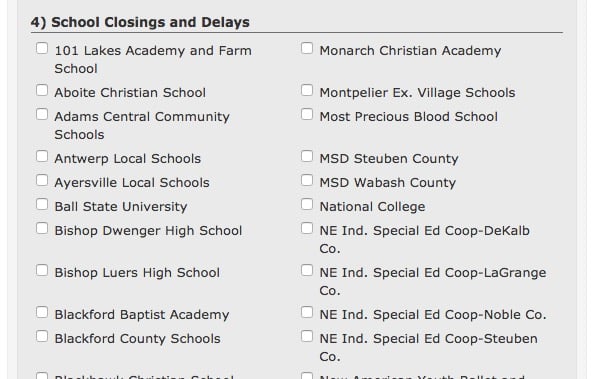 WANE 15 - Be sure to check school closings this morning... school delays, school closings, business closings, event cancellations, ... Weekend evening anchor and multimedia journalist at WANE 15 in Fort Wayne, IN. Closings - Fort Wayne News & Weather | Fort Wayne, IN | WANE 15 Feb 17, 2022 · Actor from Fort Wayne sentenced in $650 million Ponzi … Southern Indiana woman arrested after police find … FWCS: Northrop, North Side players to meet for dinner … Closings & Delays - Fort Wayne's NBC Closings & Delays. Submit a Cancellation. Your Fort Wayne Radar. 7-Day Forecast. School closings/delays: Feb.17 | Weather | The Journal Gazette Feb 17, 2022 · School closings/delays: Feb.17. Weather conditions have affected classes at several northeast Indiana schools, including East Noble Schools Corp., which is closed today. For a complete and updated ...