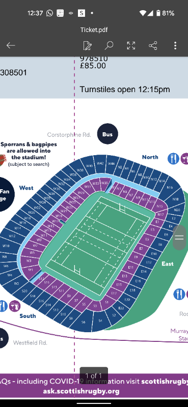 Scotland v France - Scottish Rugby Union Annual reports. All About scottish rugby. Tickets & Events. Match tickets. Supporters Club. Clubs, school & group offers. Ticketing FAQ's. Match day hospitality. BT Murrayfield tours.