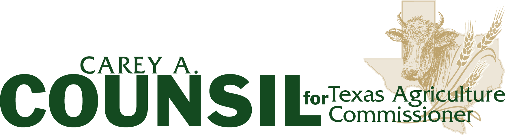 Carey A. Counsil for Texas Agriculture Commissioner ... Carey A. Counsil for Texas Agriculture Commissioner As Carey Counsil has traveled around the state and visited with voters, he is seeing and hearing the same remarks on repeat: water and landowner rights are being whittled away; producer profits are diminishing but consumer costs are rising.
