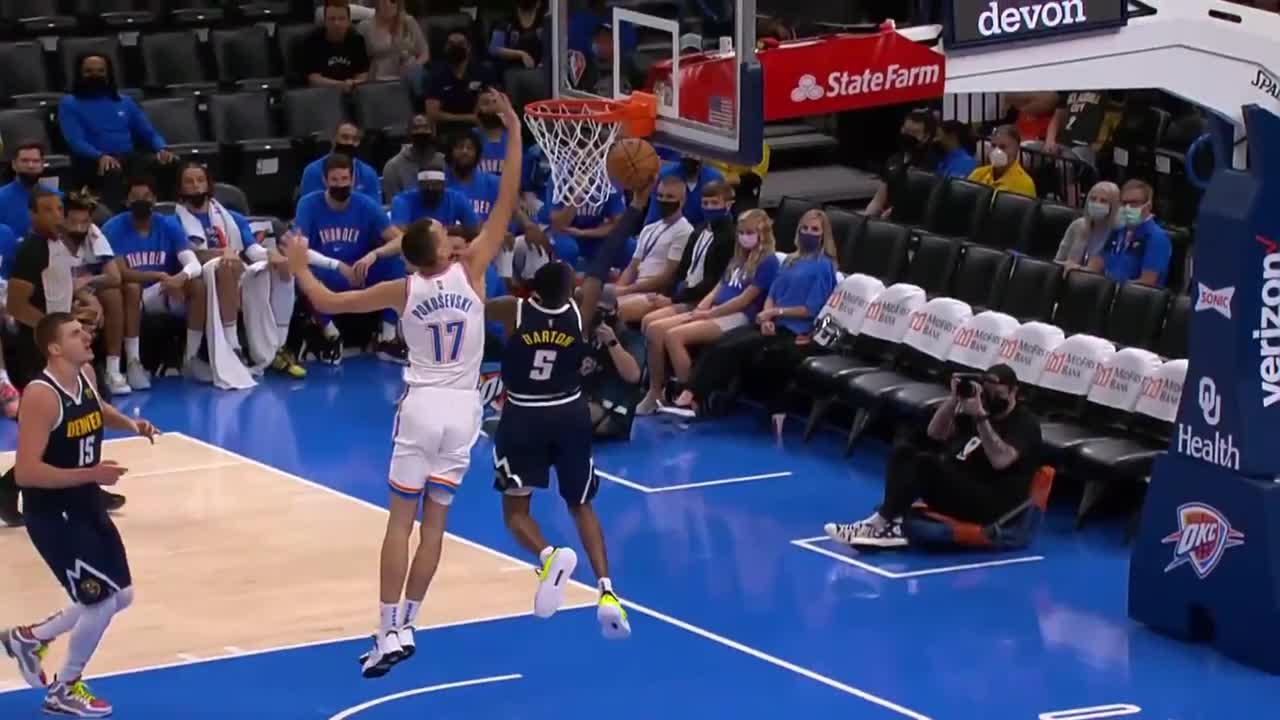 Thunder vs. Nuggets, 107-113, Box Score - 2022 Regular Season Thunder vs. Nuggets, 107-113, Box Score - 2022 Regular Season Stats from the NBA game played between the Oklahoma City Thunder and the Denver Nuggets on March 26, 2022 with result, scoring by period and players.