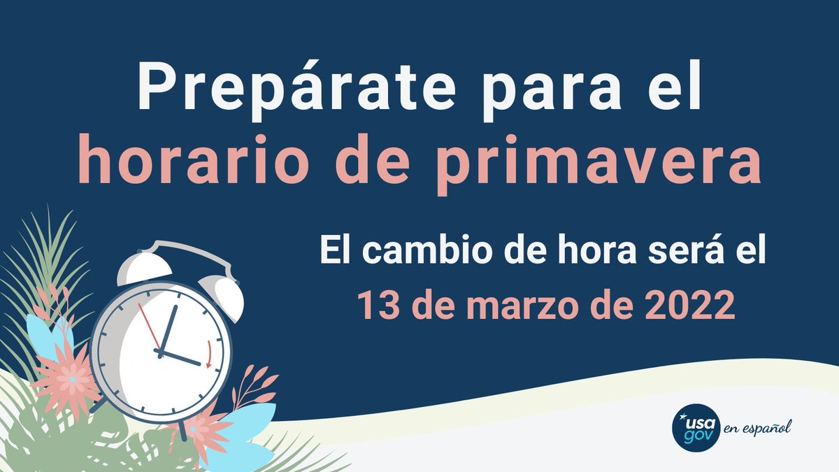 Cambio de horario USA 2022: ¿Cuándo empieza el horario de ... El cambio de horario en Estados Unidos está próximo y es que con el término del horario de invierno deberás atrasar todos tus relojes el 13 de marzo del 2022 para darle la bienvenida al horario de verano.. No es igual para todos los estados, pero no te preocupes, Mundo Deportivo te da todos los detalles para que disfrutes la llegada del Spring Break.
