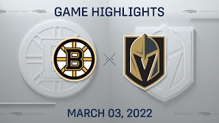 Vegas Golden Knights vs. Boston Bruins - Game Highlights Watch the Game Highlights from Vegas Golden Knights vs. Boston Bruins, 03/03/2022
