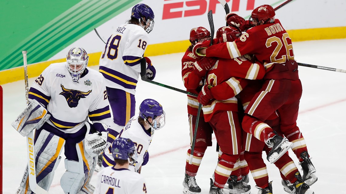 Current Schedule/Results - College Hockey News Denver Beats Michigan in Overtime To Advance To National Title Game (35) 2021-22 CHN Player of the Year: Bobby Trivigno (34) Bracket ABCs: CHN Bracket Projection (29) Western Michigan's Depth Shines in First-Ever Frozen Faceoff Win (25) Michigan Overcome Late Mistakes to Reach Boston (15) JOB line gets the job done for UMD (15)